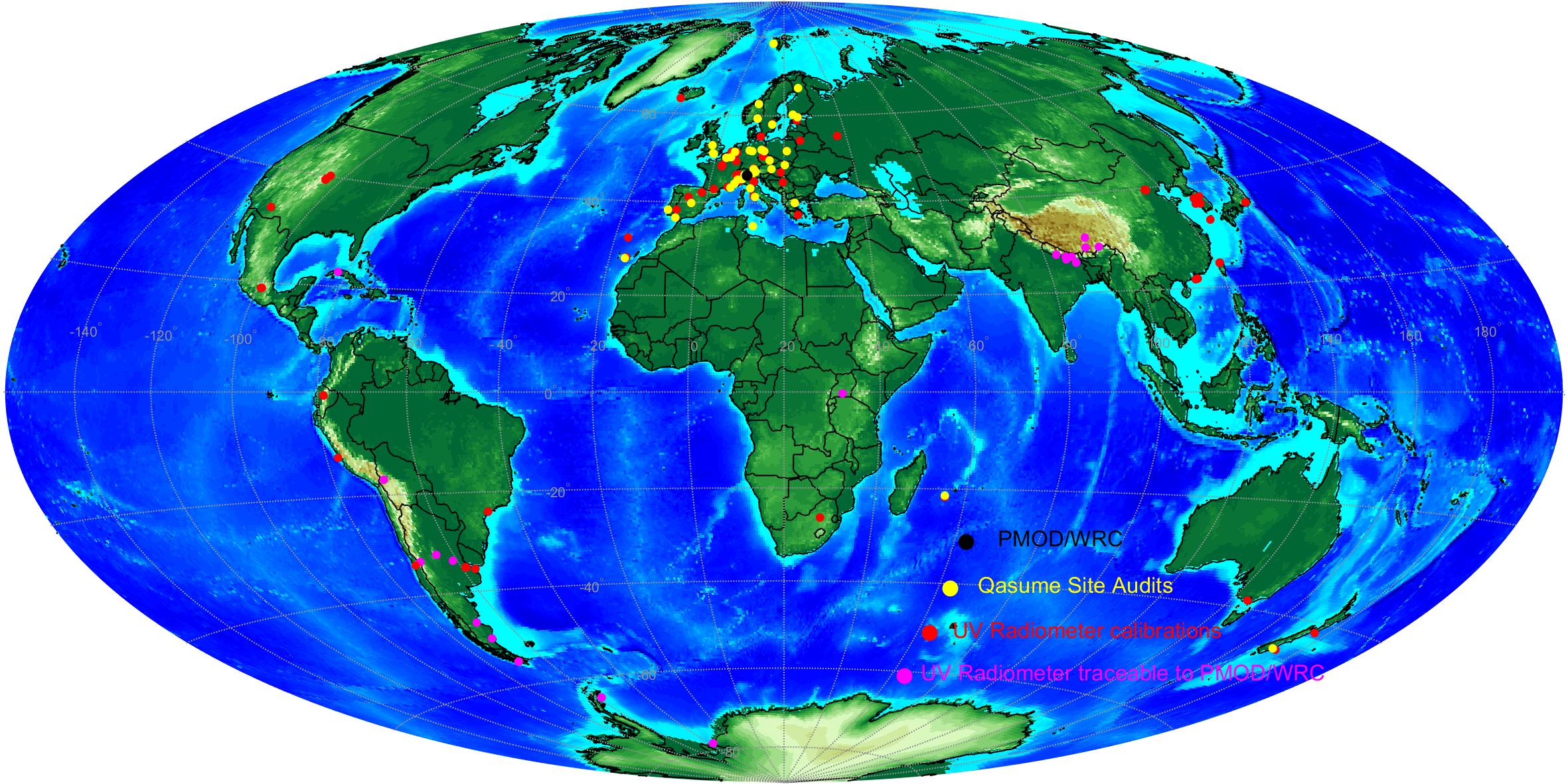 Stationäre Spektroradiometer-Systeme können durch einen Besuch des QASUME Spektroradiometers kalibriert werden. Der Besuch dauert in der Regel fünf Tage, wobei zwei Tage für die Reise- und Aufbauzeit und drei Tage für den Vergleich zwischen dem Instrument des Gastgebers und dem Referenzinstrument benötigt werden. Nach einem QASUME Audit wird ein detaillierter Bericht des Vergleichs- und eines Kalibrierzertifikats (siehe Zertifikat C1 und Bericht R1 und Bericht R2) ausgegeben. Es wird empfohlen, dass der Besuch jährlich wiederholt wird, um die langfristige Stabilität des Systems zu gewährleisten.